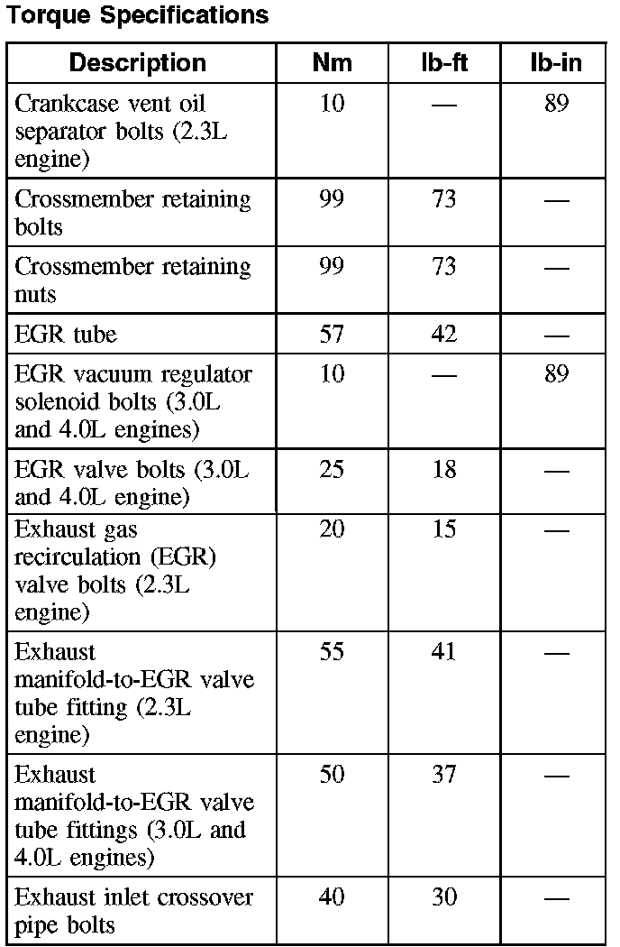 Torque Specifications: