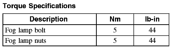 Torque Specifications: