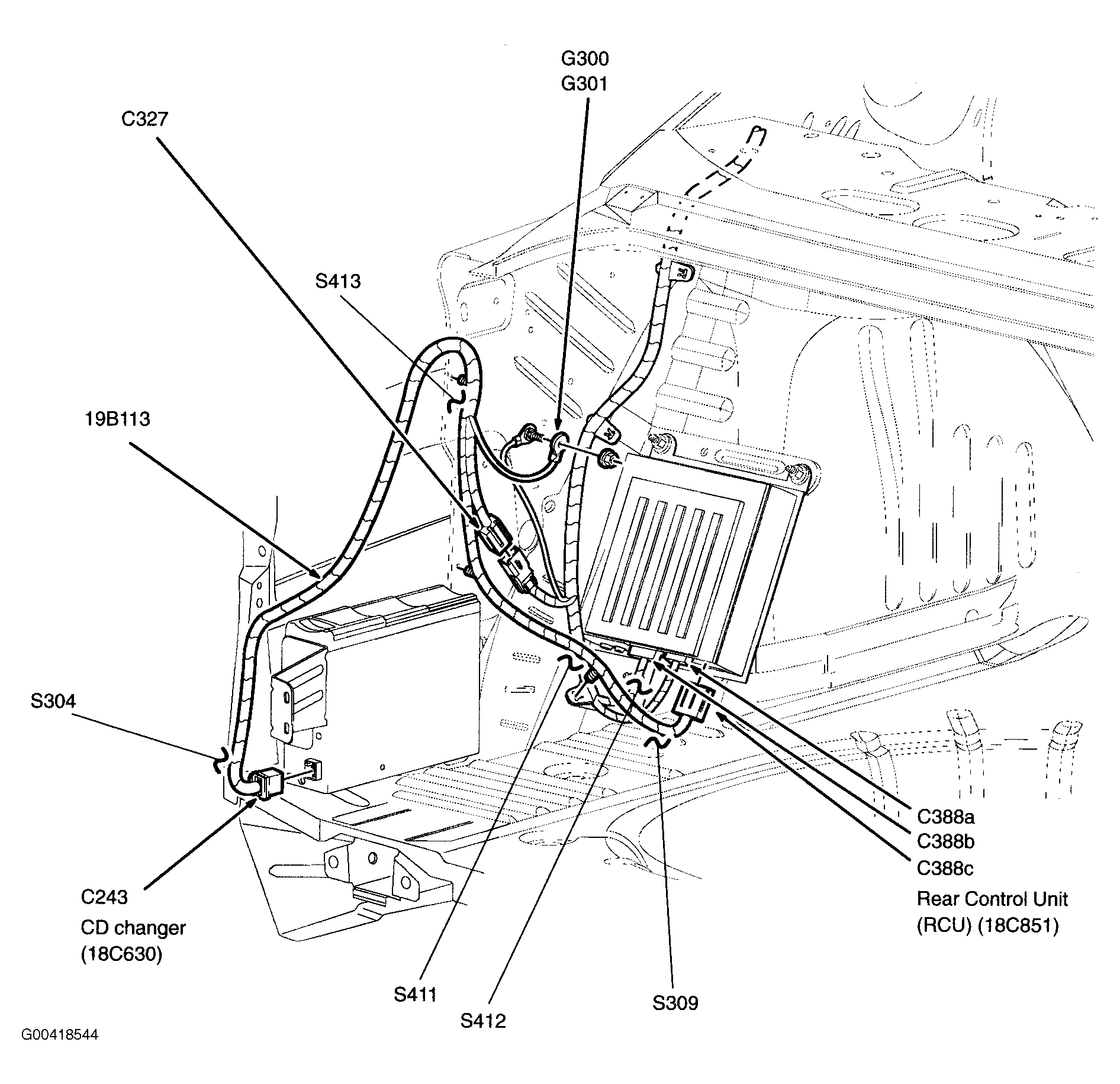 | S413 | Left side of luggage compartment, behind lining. See Figure. |