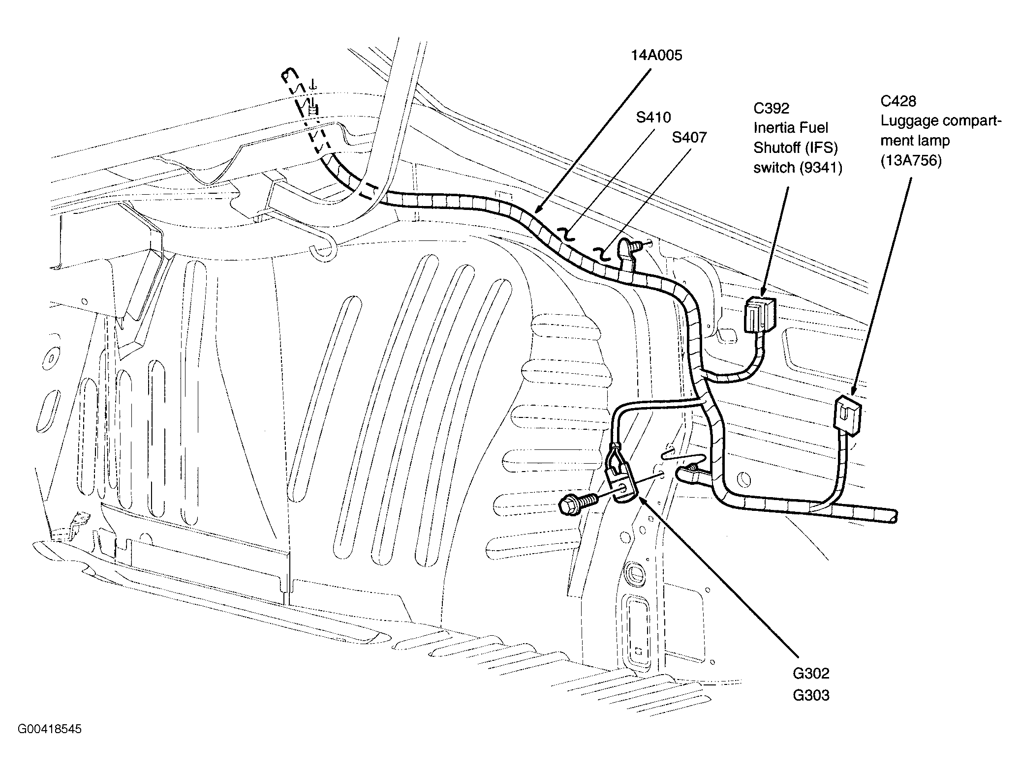 | S412 | Left side of luggage compartment, behind lining. See Figure. |