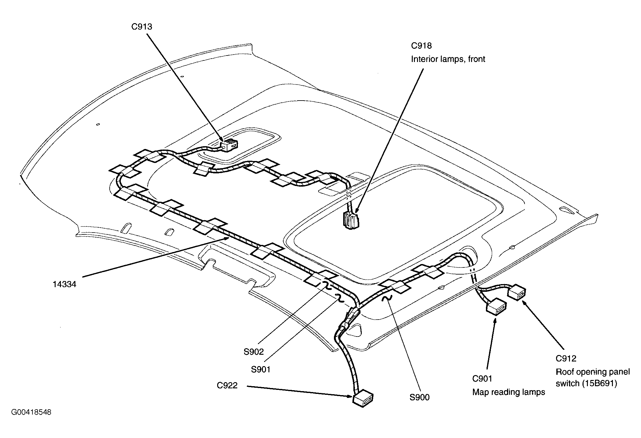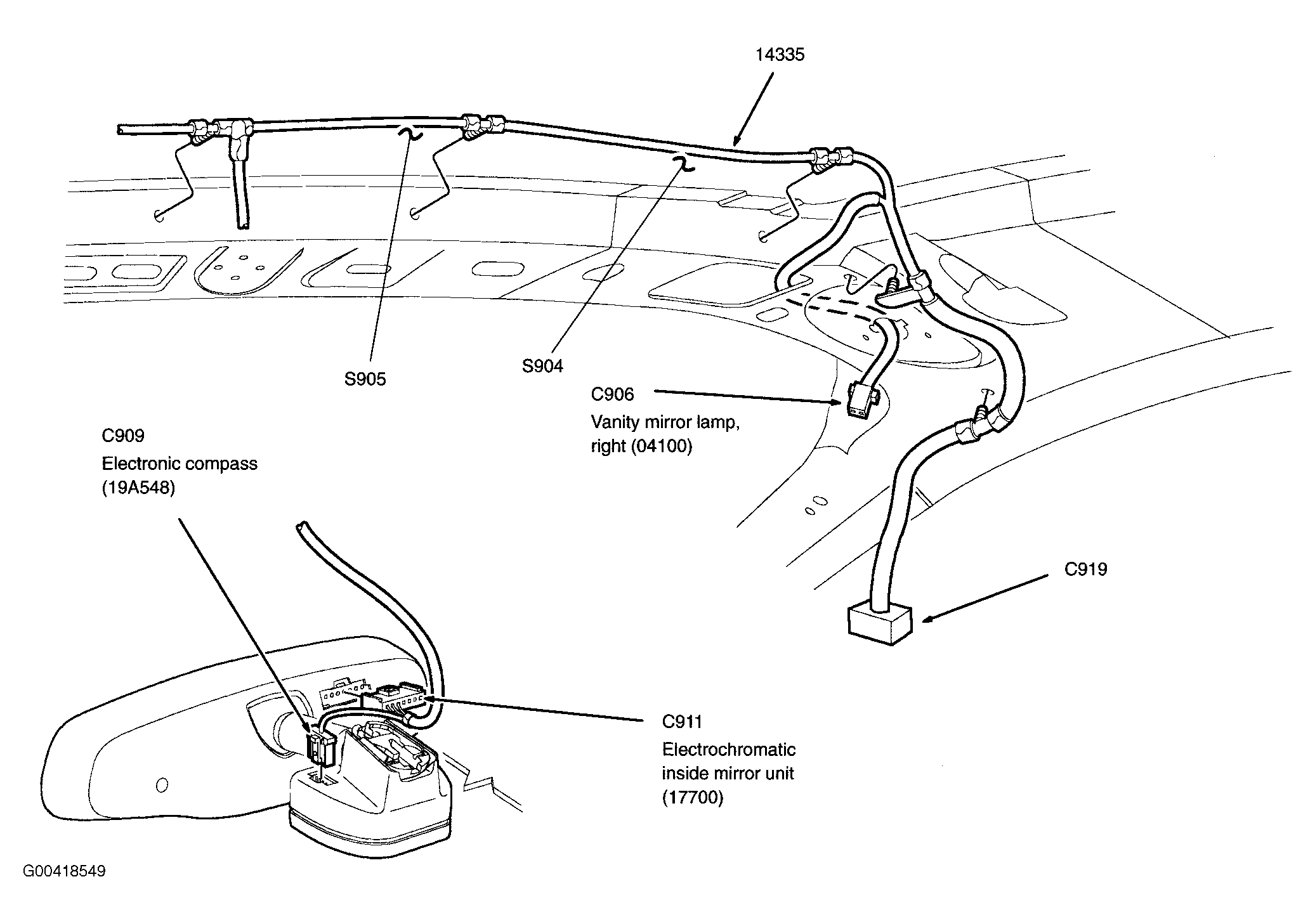 | S905 | Front center of vehicle, in roof. See Figure. |
