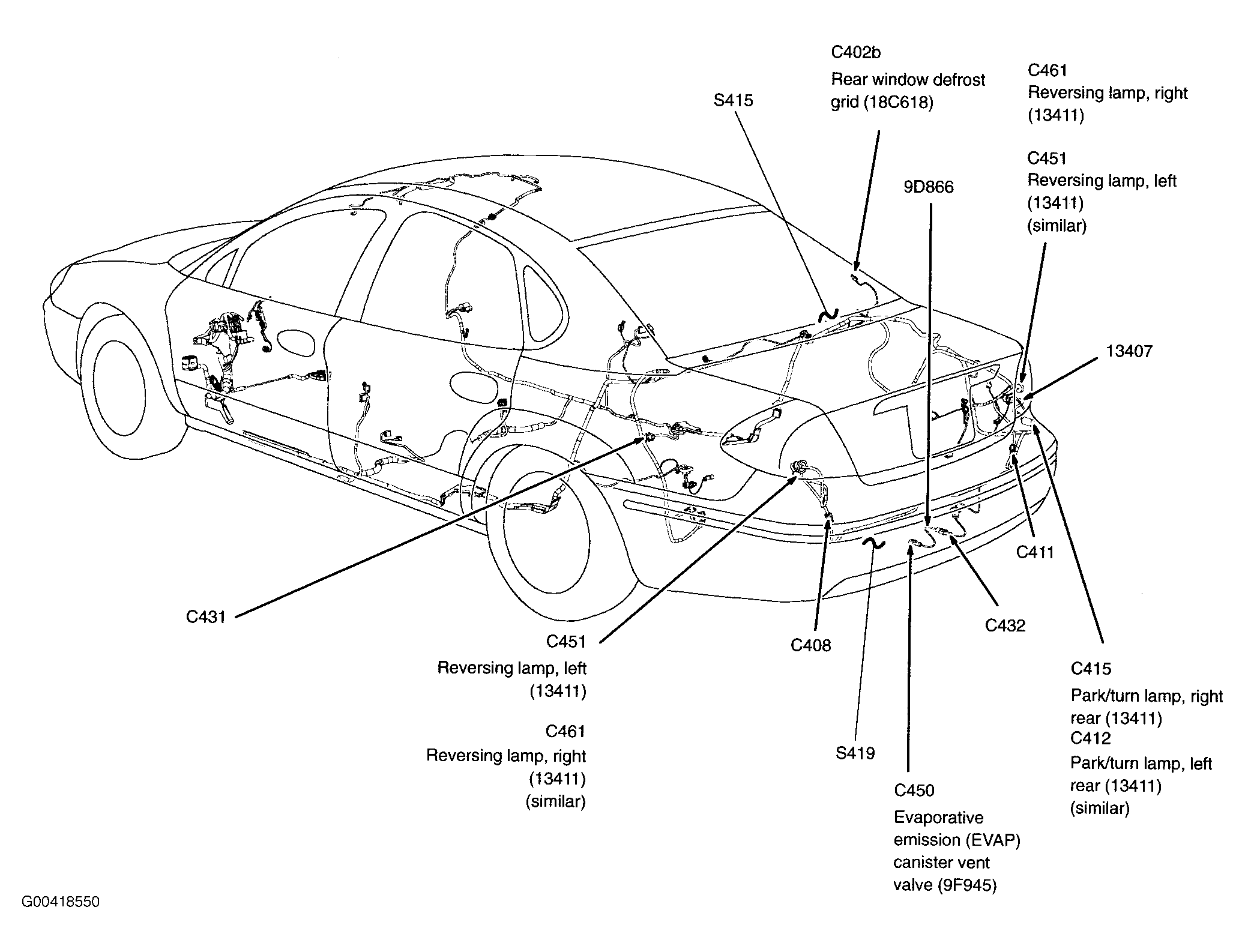 | S415 | Right side of rear window, behind rear seats. See Figure. |