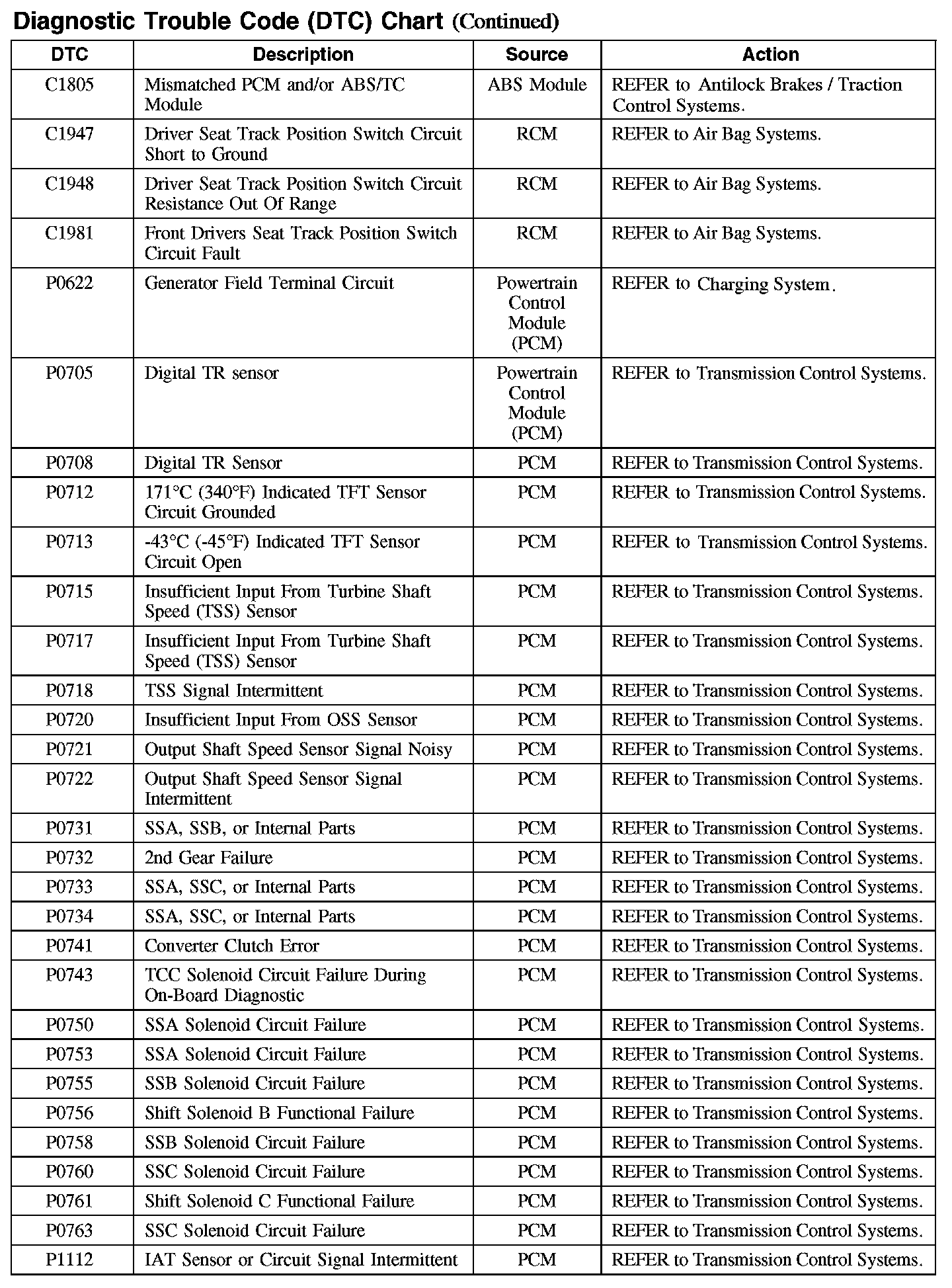 C1805-C1981 / P0622-P1112:
