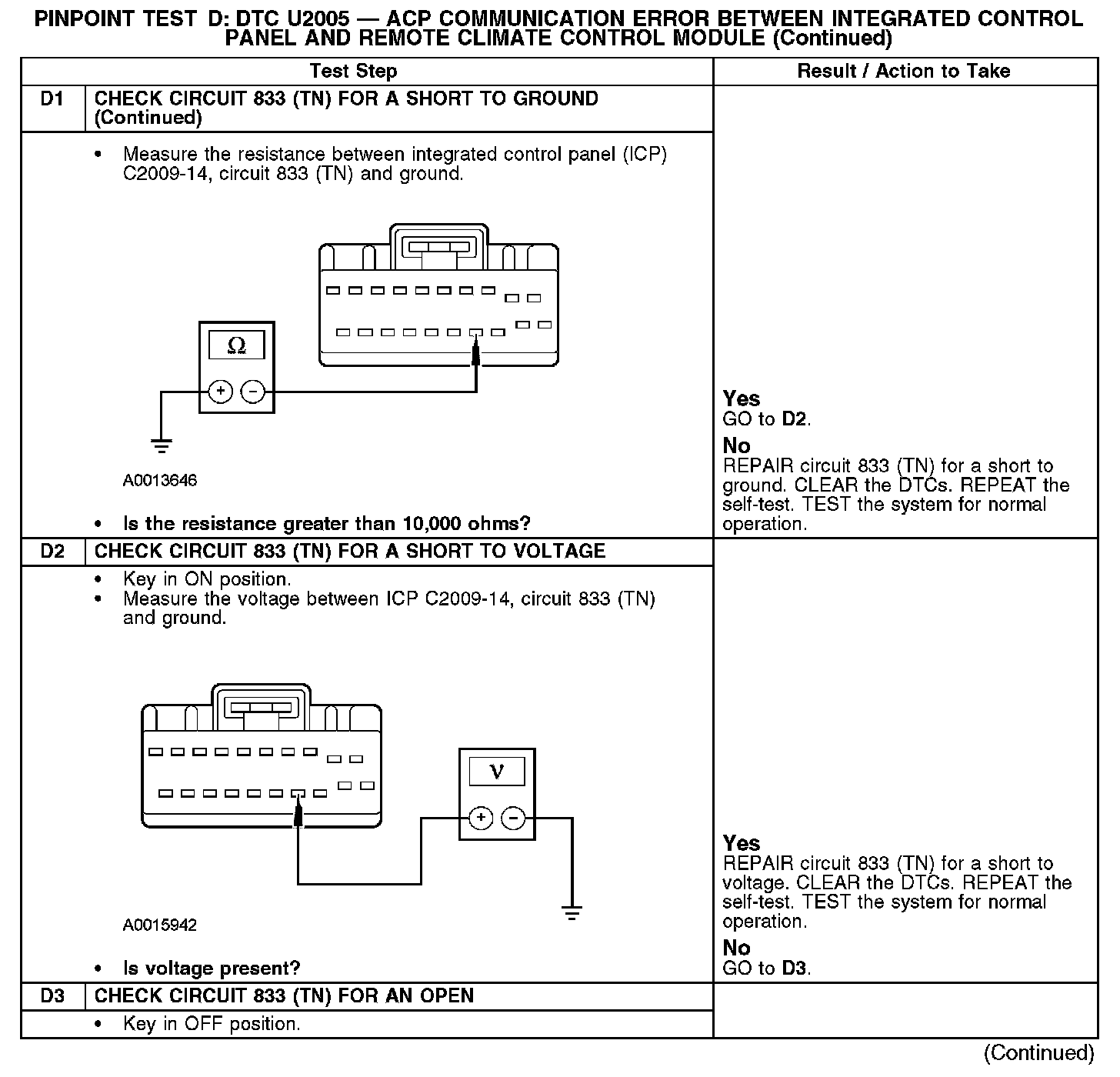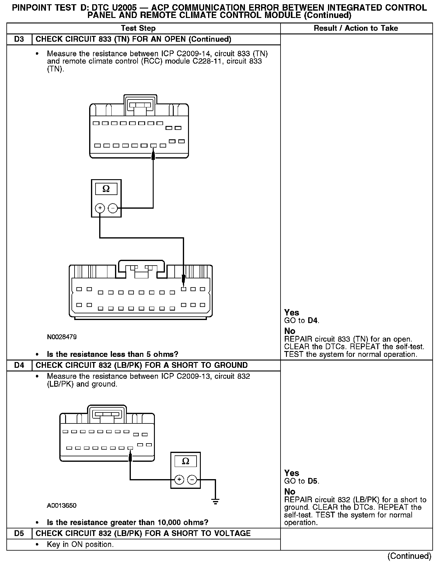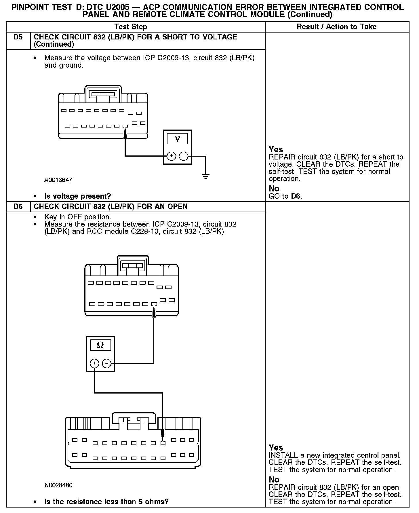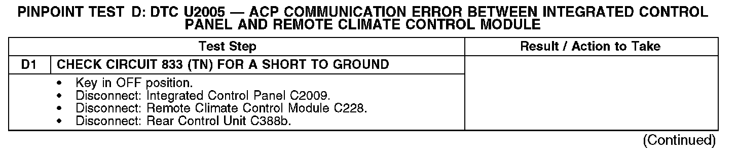 Test D: DTC U2005 - ACP Communication Error Between Integrated Control Panel and Remote Climate Control Module
