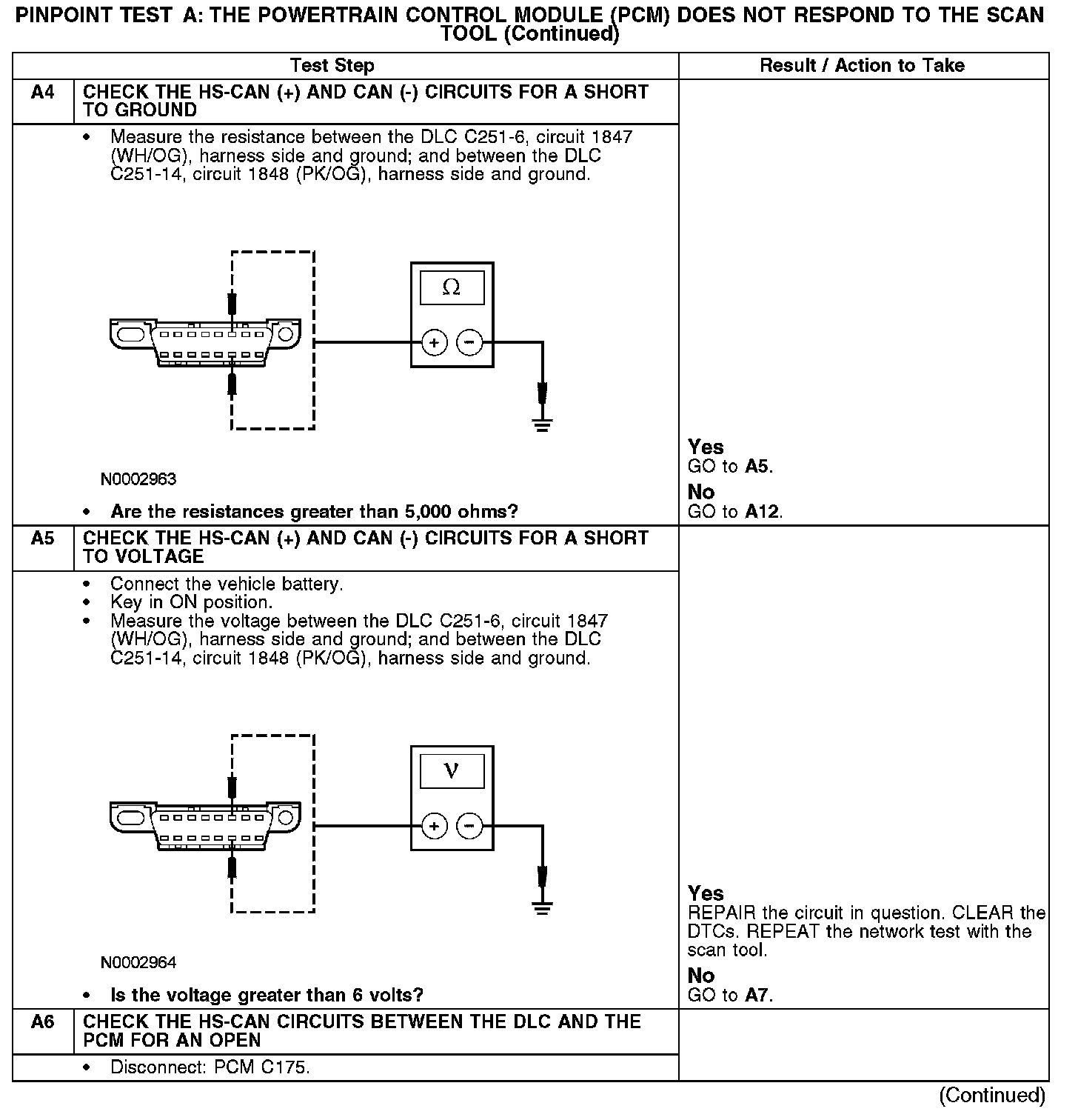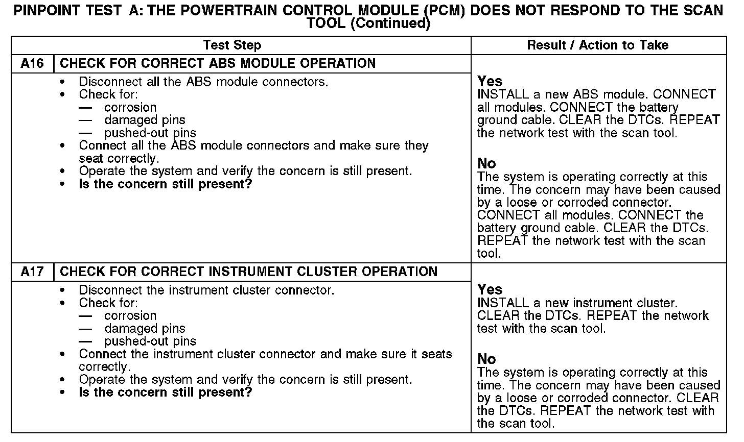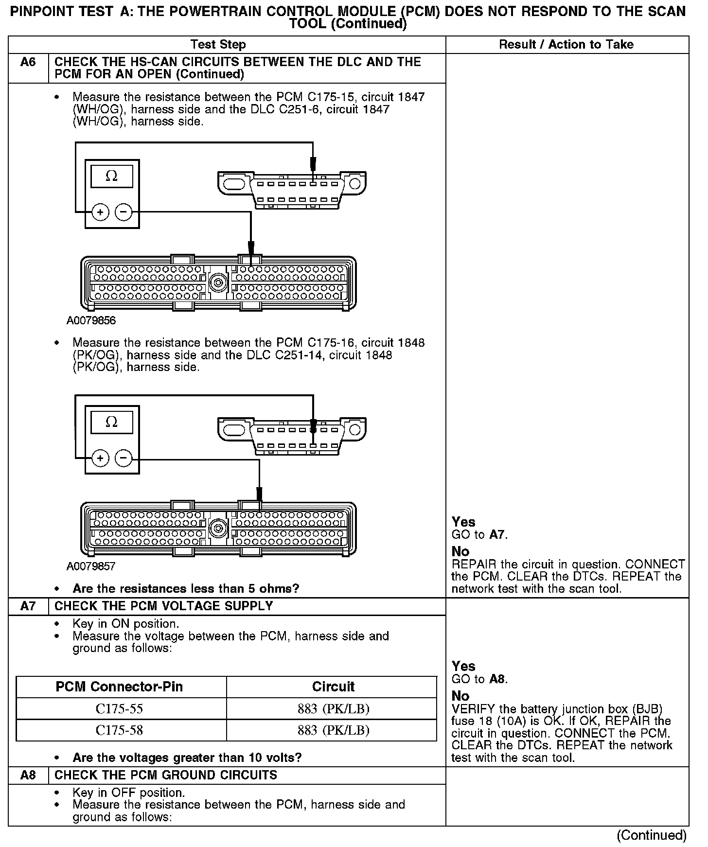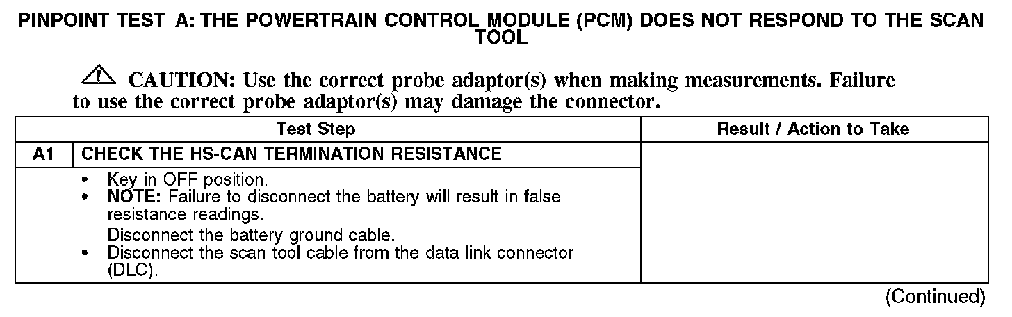 Home >> Ford >> 2007 >> Taurus V6-3.0L VIN U >> Repair and Diagnosis >> Powertrain Management >> Computers and Control Systems >> Information Bus >> Testing and Inspection >> Pinpoint Tests >> Test A: The Powertrain Control Module (PCM) Does Not Respond To The Scan Tool