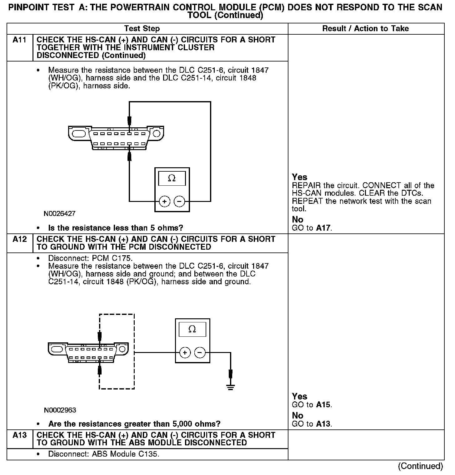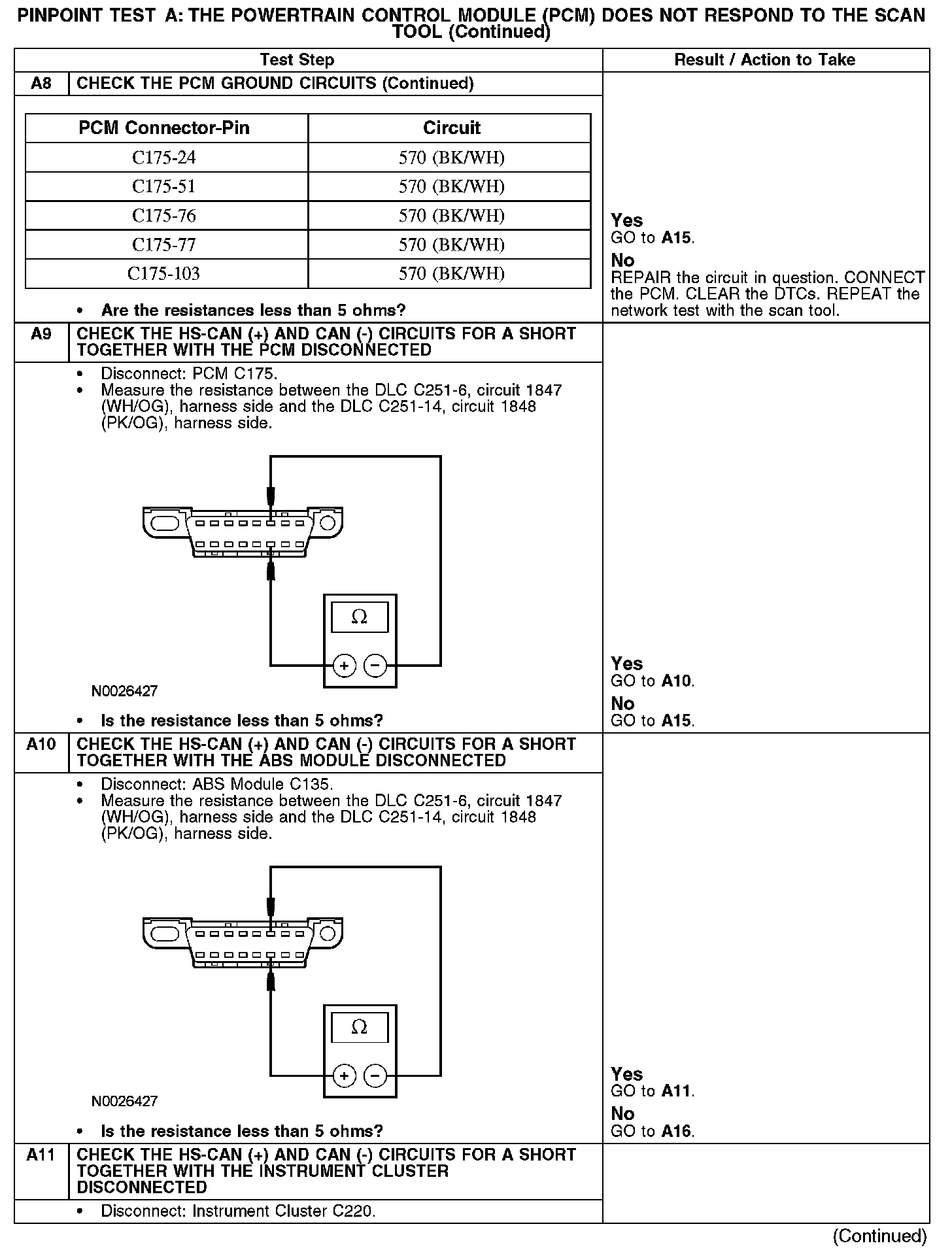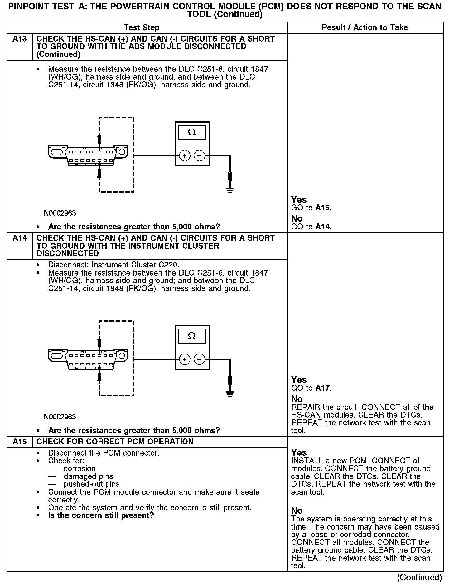 Home >> Ford >> 2007 >> Taurus V6-3.0L VIN U >> Repair and Diagnosis >> Powertrain Management >> Computers and Control Systems >> Information Bus >> Testing and Inspection >> Pinpoint Tests >> Test A: The Powertrain Control Module (PCM) Does Not Respond To The Scan Tool