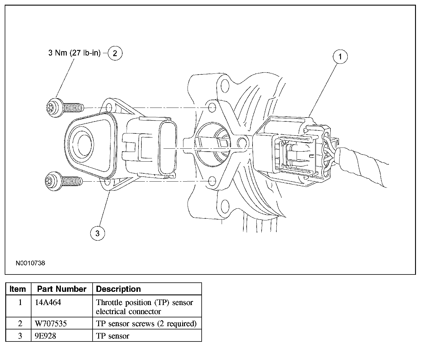 - Tighten to 3 Nm (27 lb-in).