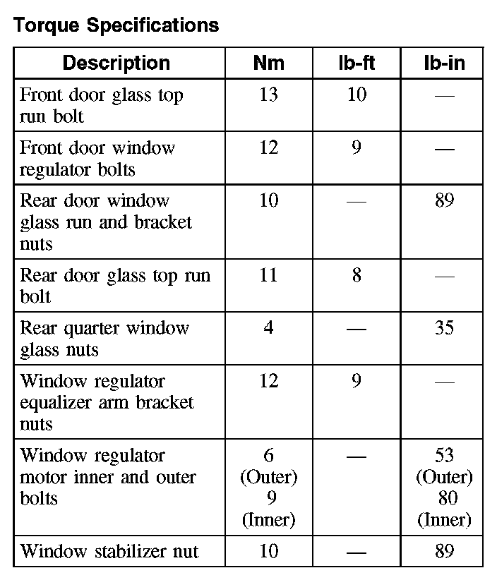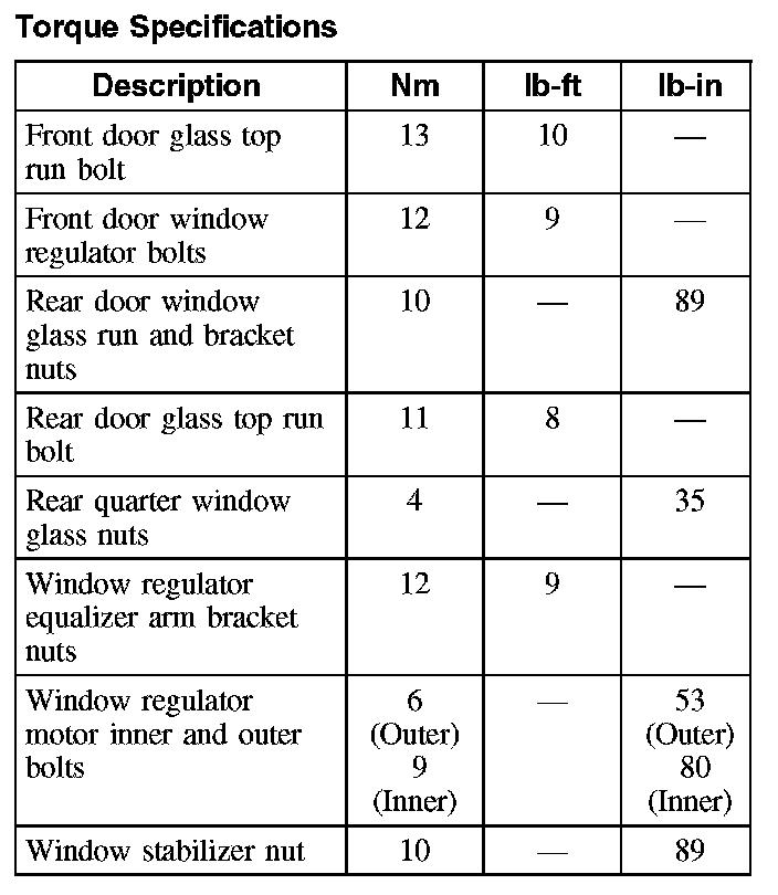Torque Specifications:
