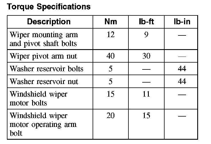 Torque Specifications