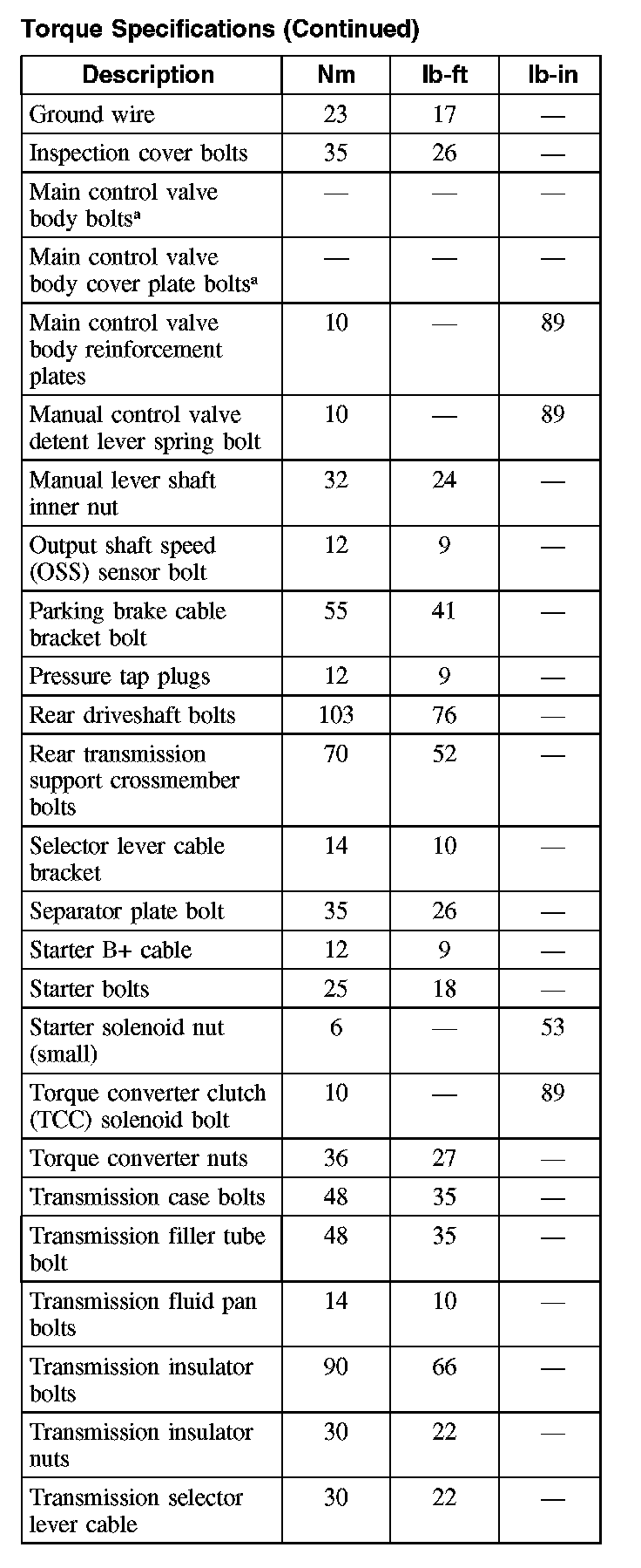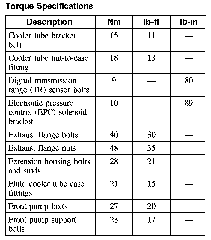 Torque Specifications