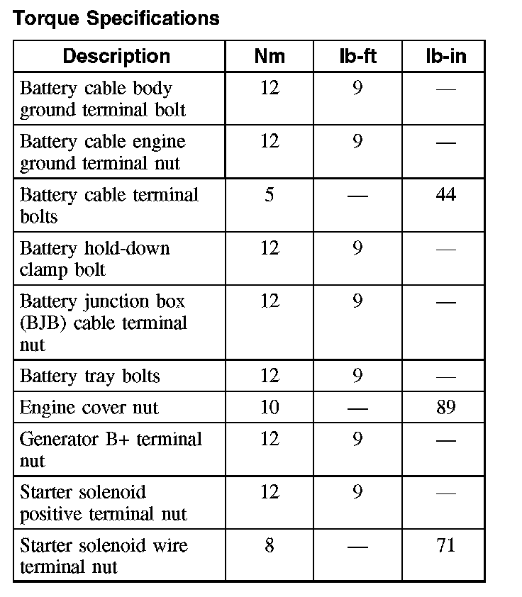 Torque Specifications: