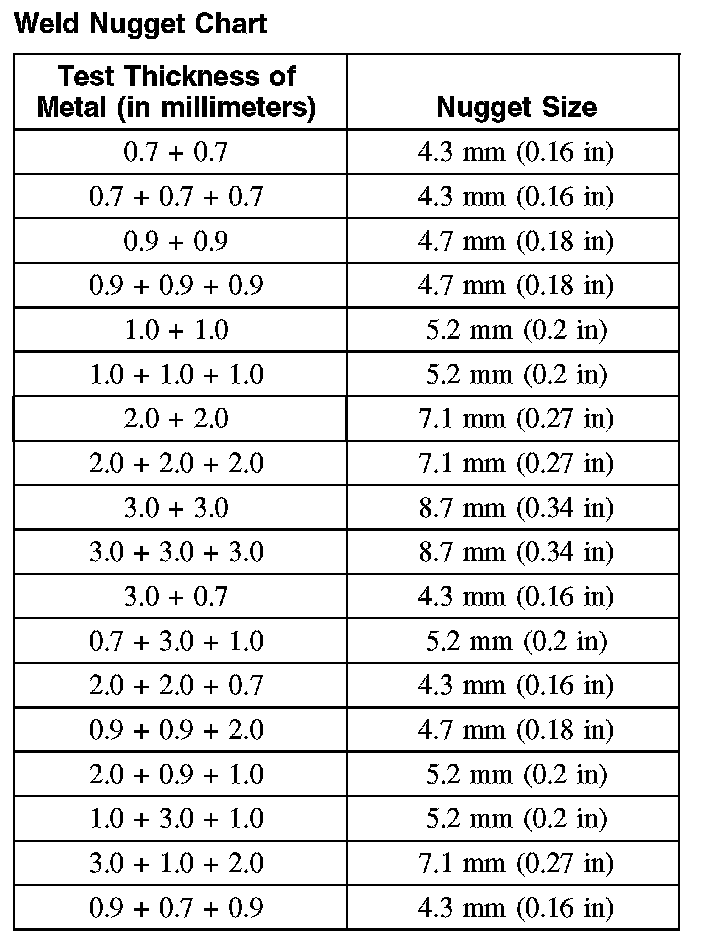 Weld Nugget Chart: