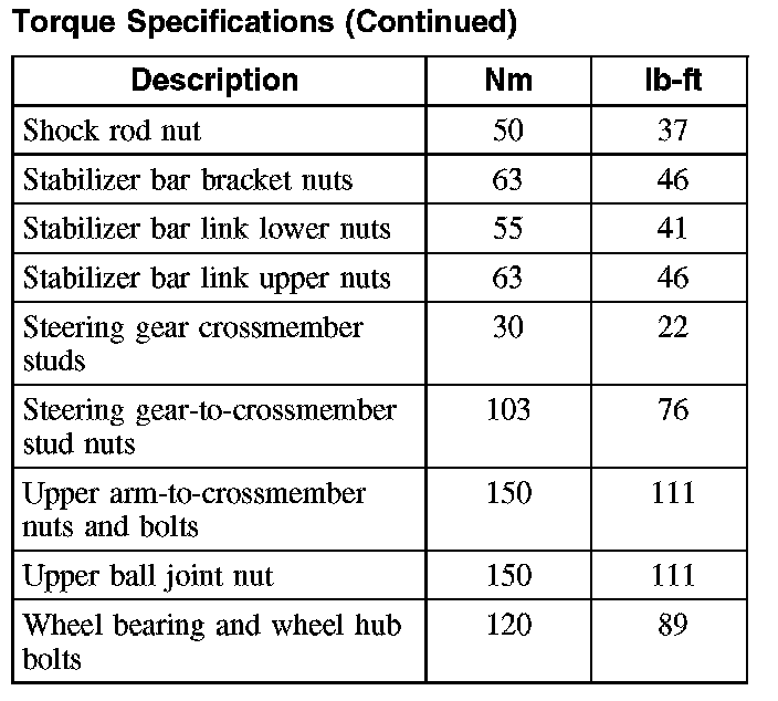 Torque Specifications
