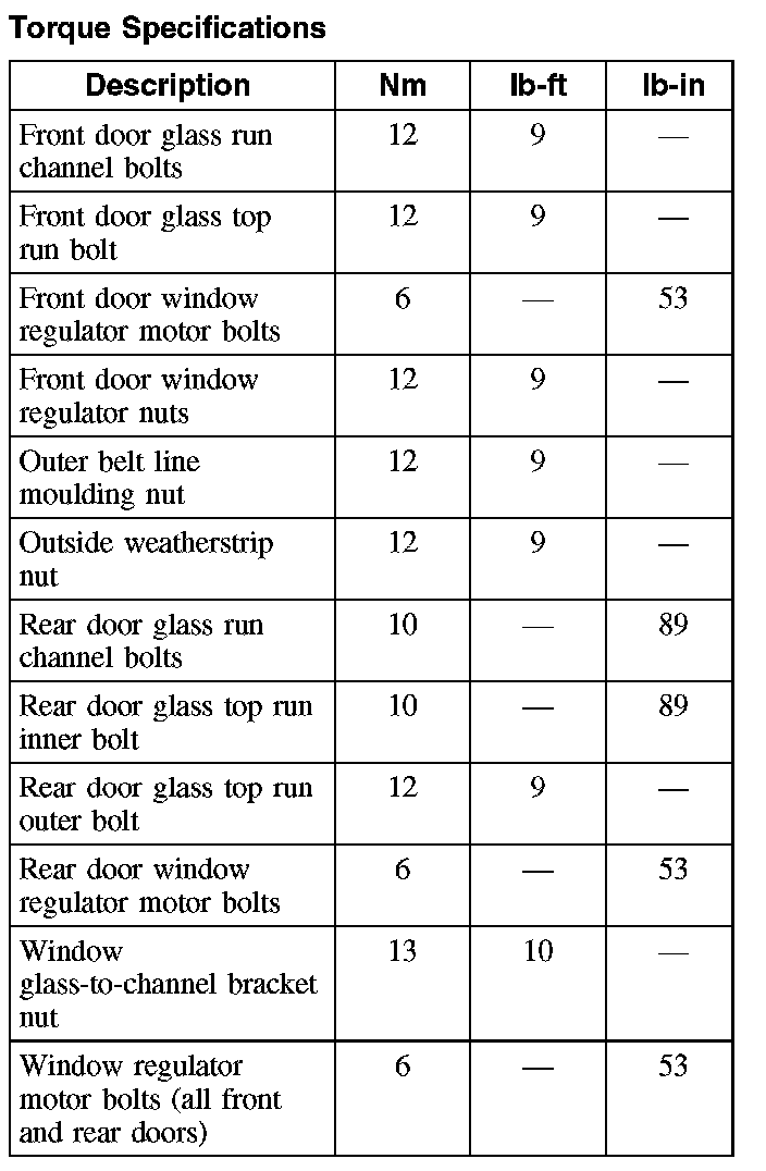 Torque Specifications: