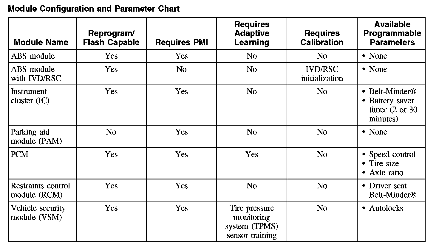 Programmable parameters are customer preference items that may be modified by the dealer via scan tool or in some cases modified by the customer following a procedure listed in the vehicle Owner's Literature. While many configuration options may exist for a module, only a few of these options are programmable parameters.