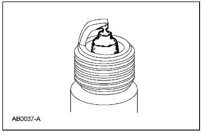 5. Inspect for pre-ignition, identified by melted electrodes and a possibly damaged insulator. Metallic deposits on the insulator indicate engine damage. This may be caused by incorrect ignition timing, wrong type of fuel or the unauthorized installation of a Heli-Coil(R) insert in place of the spark plug threads.
