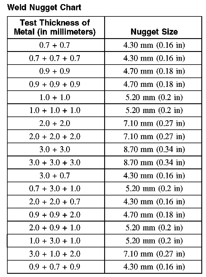Weld Nugget Chart: