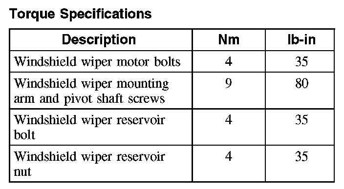 Torque Specifications: