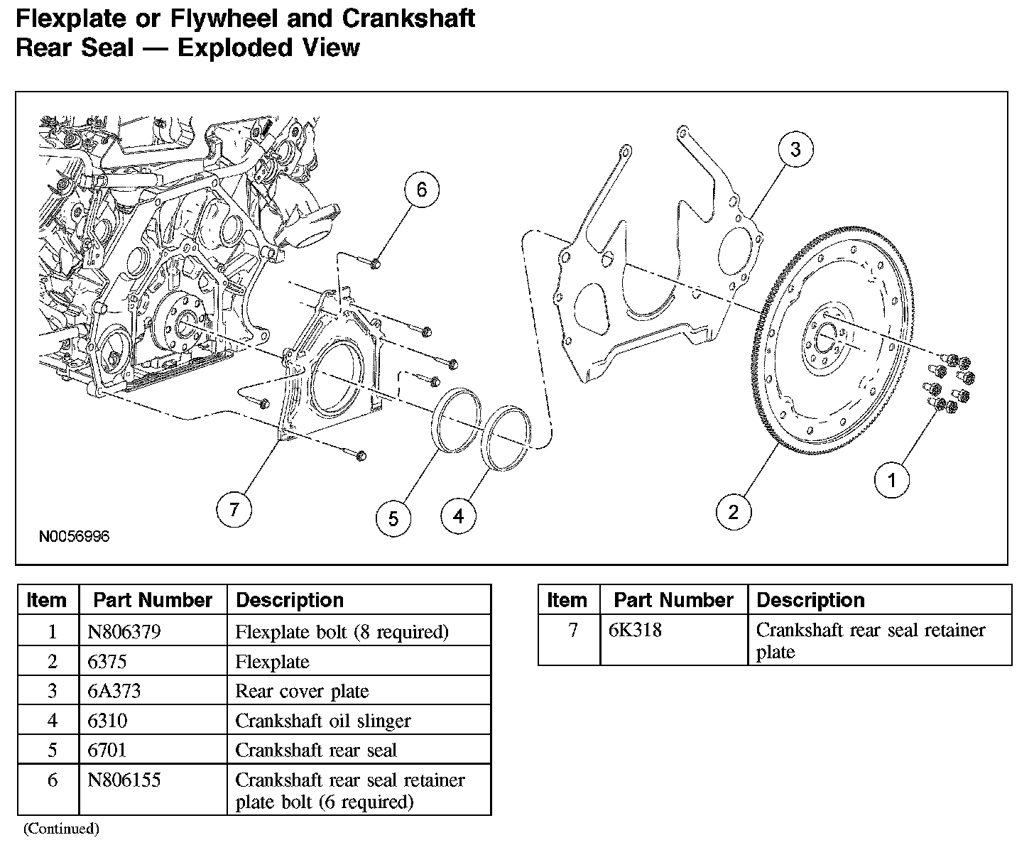 Flexplate or Flywheel and Crankshaft Rear Seal - Exploded View:
