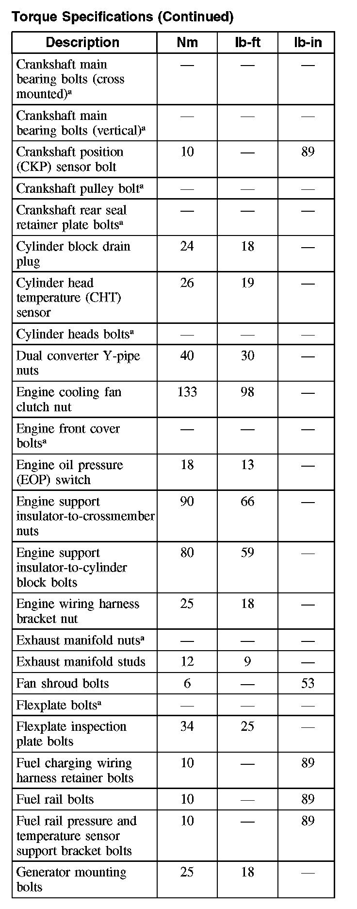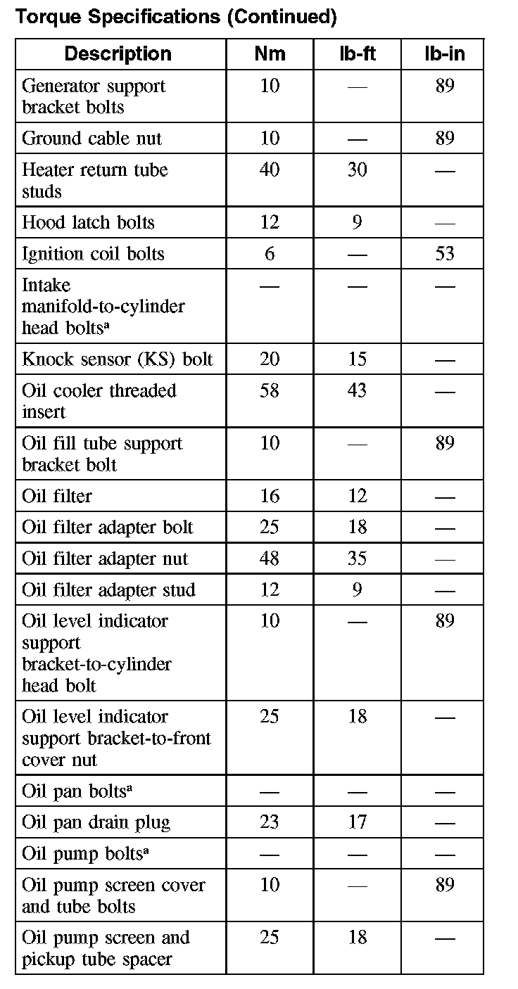 Torque SpecificationsCylinder Head Bolts