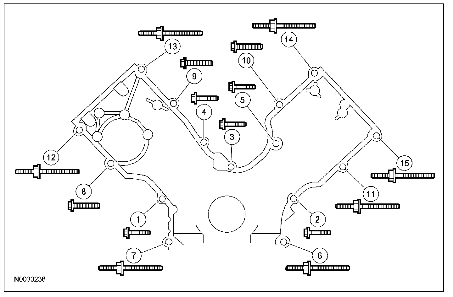 Stage 2: Fasteners 6 through 15 48 Nm (35 lb-ft).