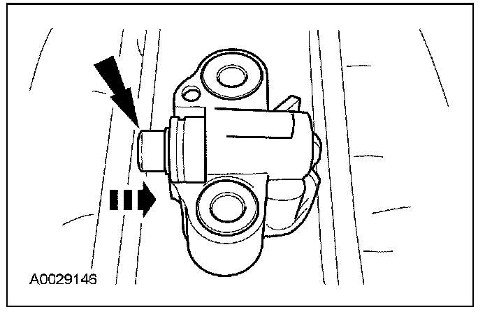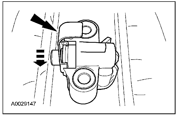 2. Install a retaining clip on the tensioner to hold the plunger in during installation.