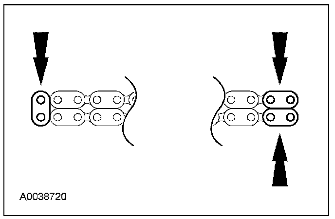 3. If the copper links are not visible, mark 2 links on one end and 1 link on the other end, and use as timing marks.
