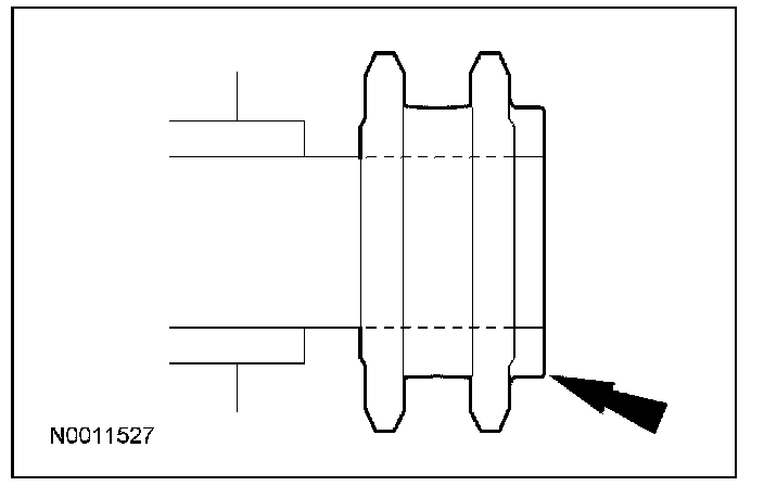 5. CAUTION: If one or both of the tensioner mounting bolts are loosened or removed, the tensioner-sealing bead must be inspected for seal integrity. If cracks, tears or separation from the tensioner body or permanent compression of the seal bead is observed, install a new tensioner. Failure to follow these instructions may result in engine damage.