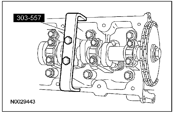 ^ Tighten the Camshaft Position Aligner tools to maintain camshaft pre-positioning.