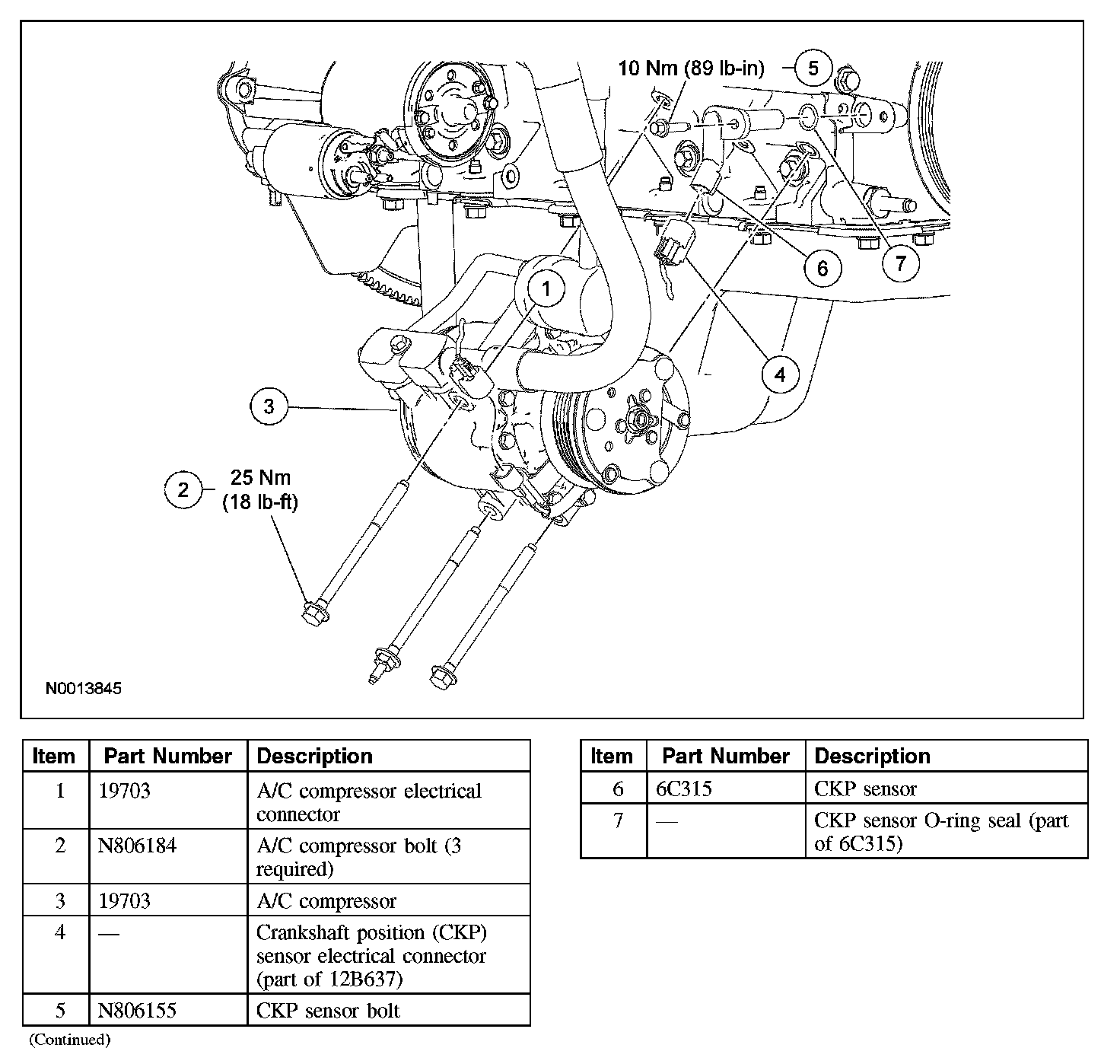 Loosen the bolts enough to slide the A/C compressor down 25.4 mm (1 in), allowing access for CKP sensor removal.