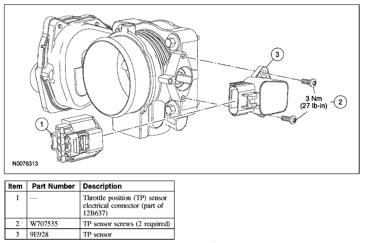- Do not reuse the throttle position (TP) sensor and screws or damage to the throttle body (TB) may occur. A new TP sensor and screws must be installed.