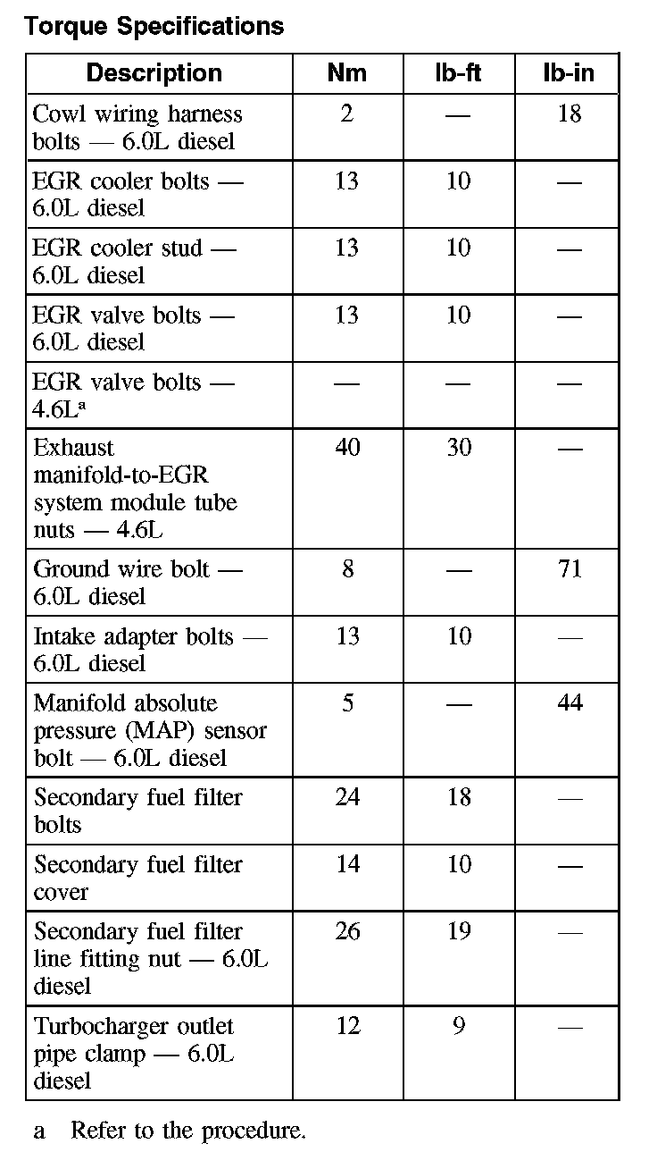 Torque Specifications:
