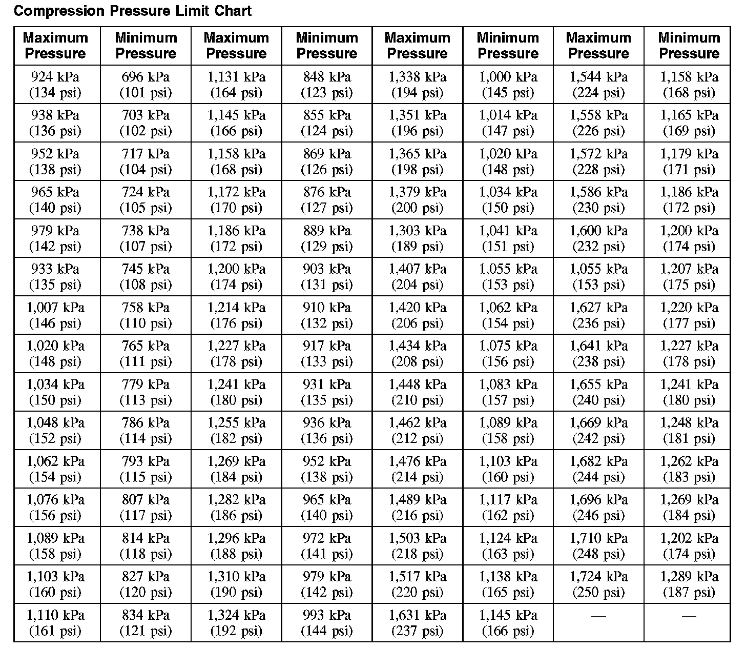 Compression Pressure Limit Chart: