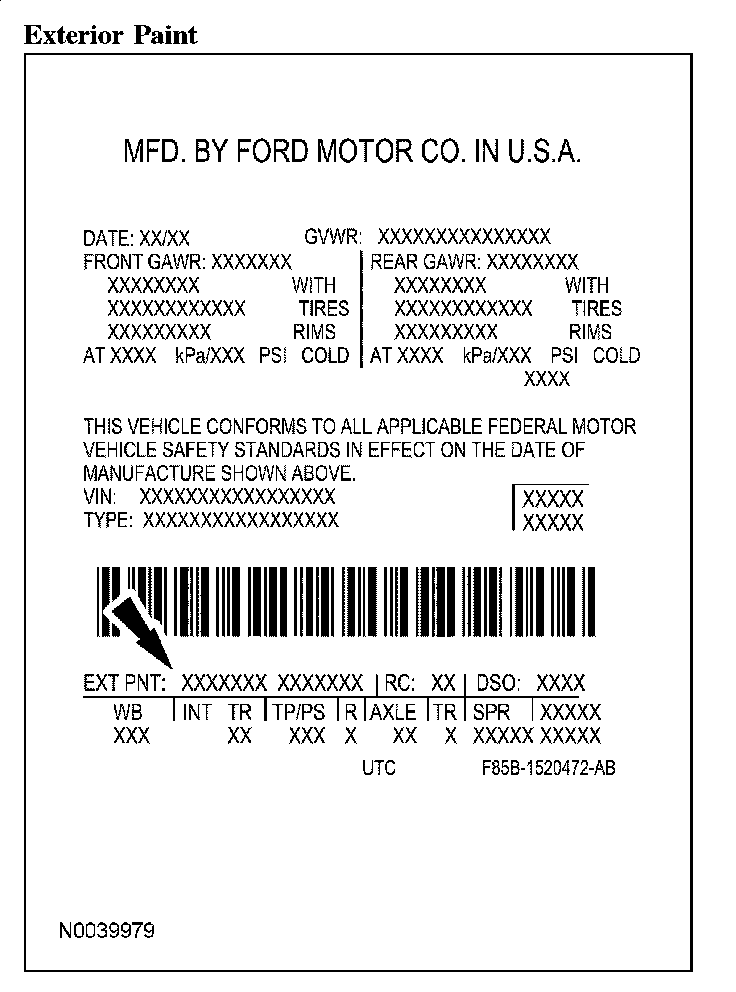 Exterior paint codes may be listed as a 2-part code. The first set of characters identify the primary body color. The second set of characters (if applicable) identify the vehicle accent or 2-tone body color. All colors are base coat/clear coat.