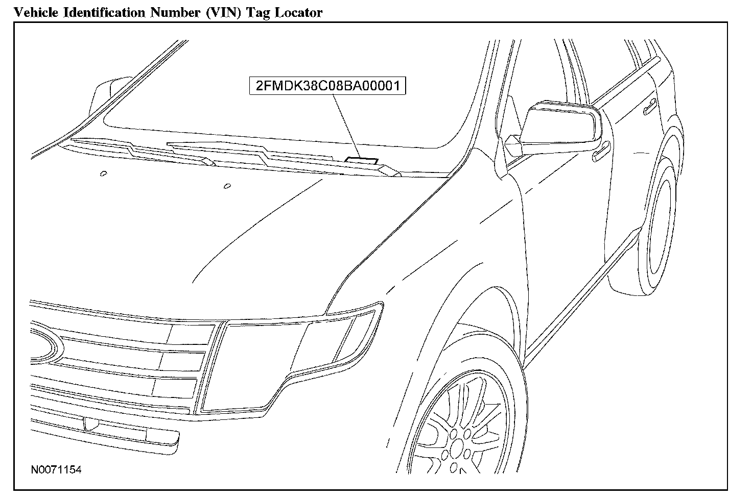 The vehicle identification number (VIN) is a 17-digit combination of letters and numbers. The VIN is stamped on a metal tab riveted on the instrument panel, top upper left of the dash. The VIN is also found on the vehicle certification (VC) label.