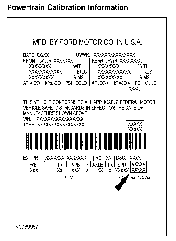 Powertrain calibration information is printed in the lower right corner of the VC label. Only base calibration information is printed. Revision levels will not appear, however, they can be found in OASIS.