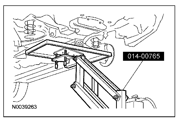 3. With a wax pencil, mark the relationship of the rear subframe to the underbody at the mounting locations.