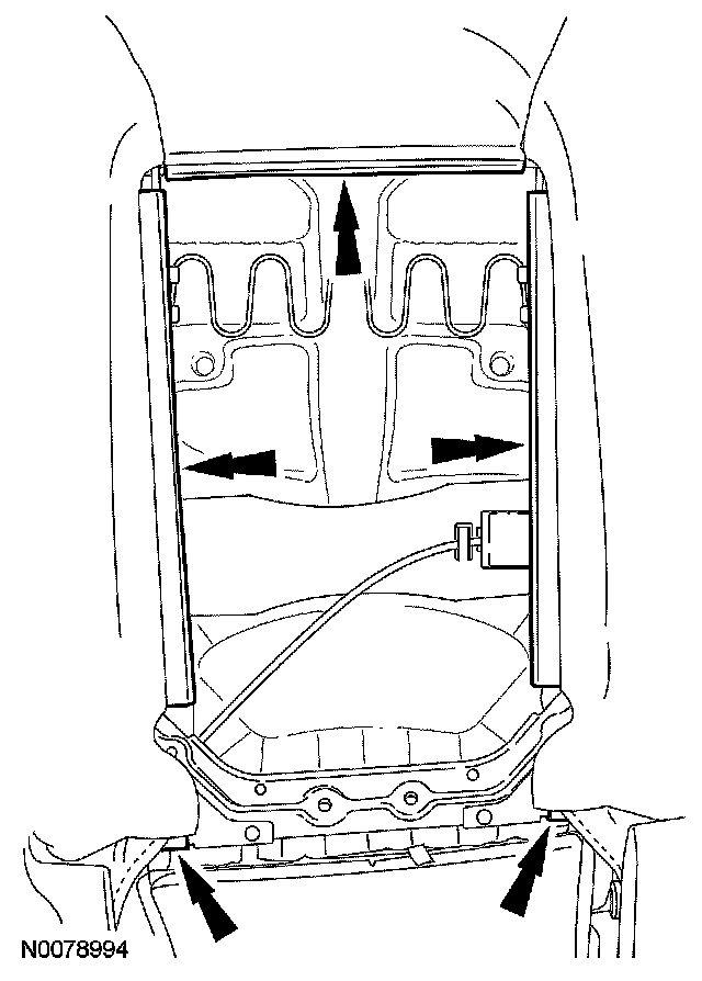 1 Release the 2 pin-type retainers at the bottom of the backrest trim panel.