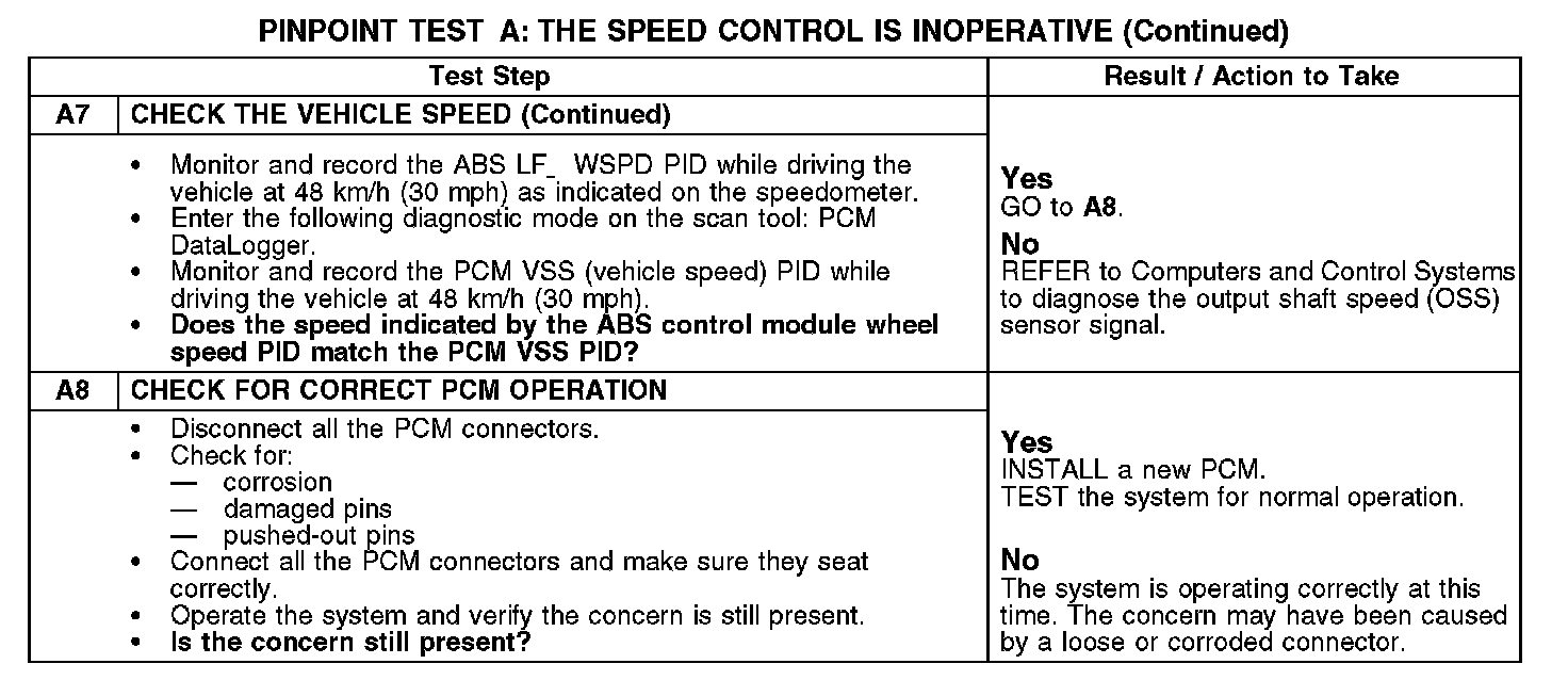 PINPOINT TEST A: THE SPEED CONTROL IS INOPERATIVENormal Operation