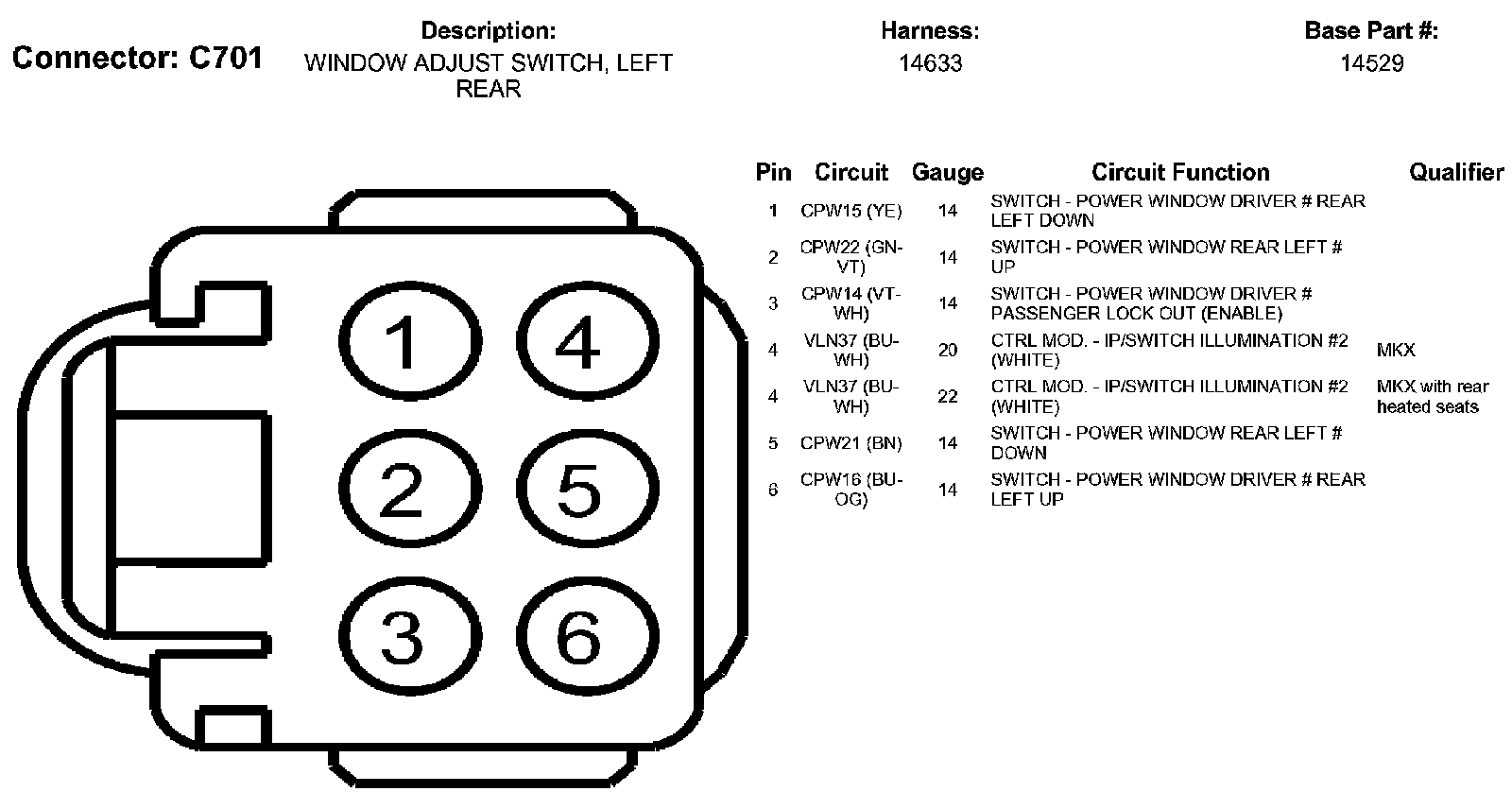 Window Adjust Switch, Left Rear