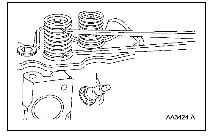 ^ Turn the valve spring and observe the space between the top of the valve spring and the square.