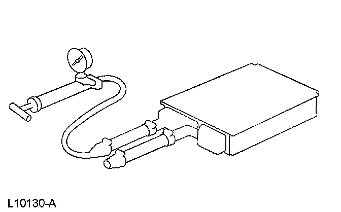 8. If the pressure drops, check the heater hose connections to the core tubes for leaks. If the heater hoses do not leak, remove the heater core from the vehicle and carry out the bench test.