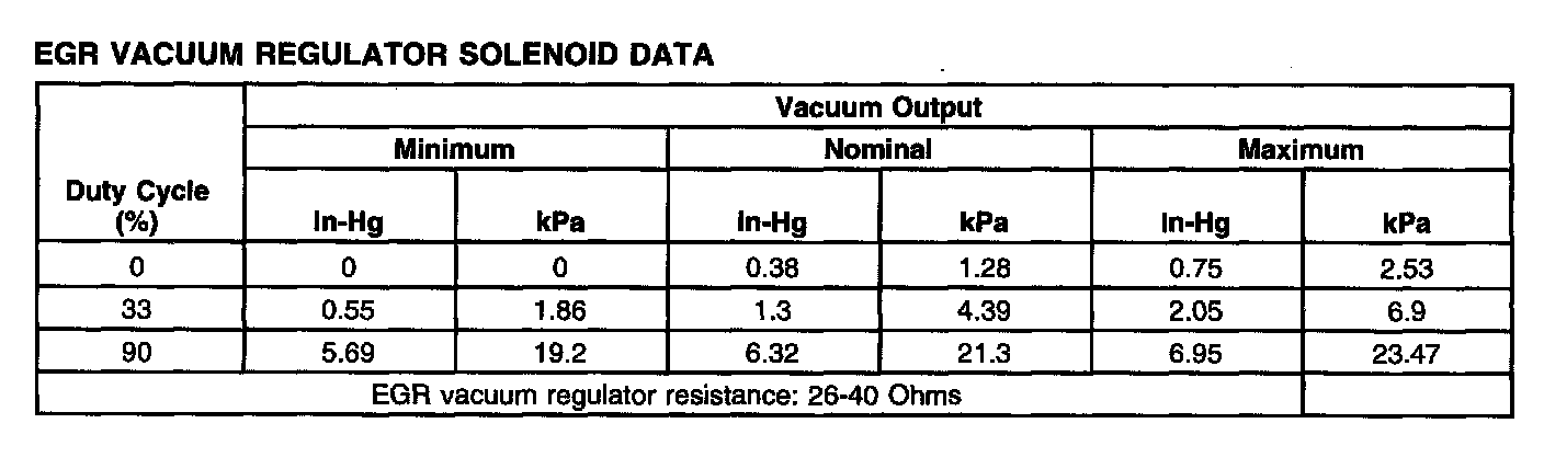 EGR Vacuum Regulator Solenoid Data: