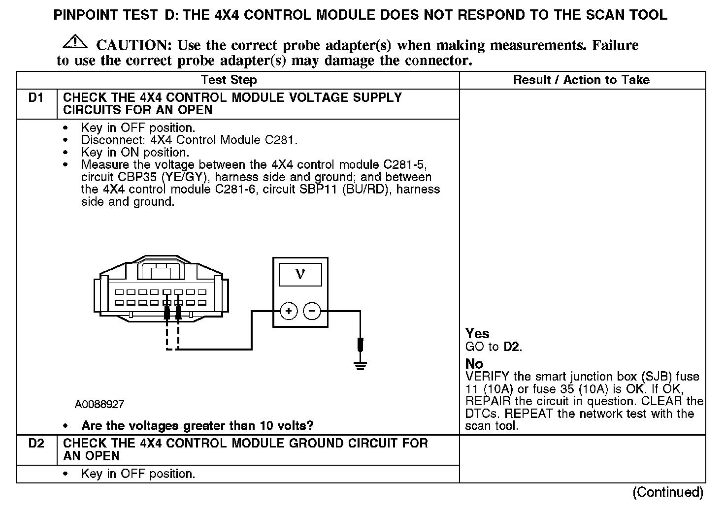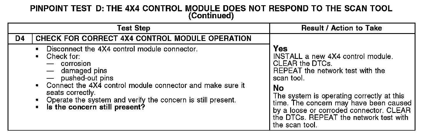 PINPOINT TEST D: THE 4X4 CONTROL MODULE DOES NOT RESPOND TO THE SCAN TOOL