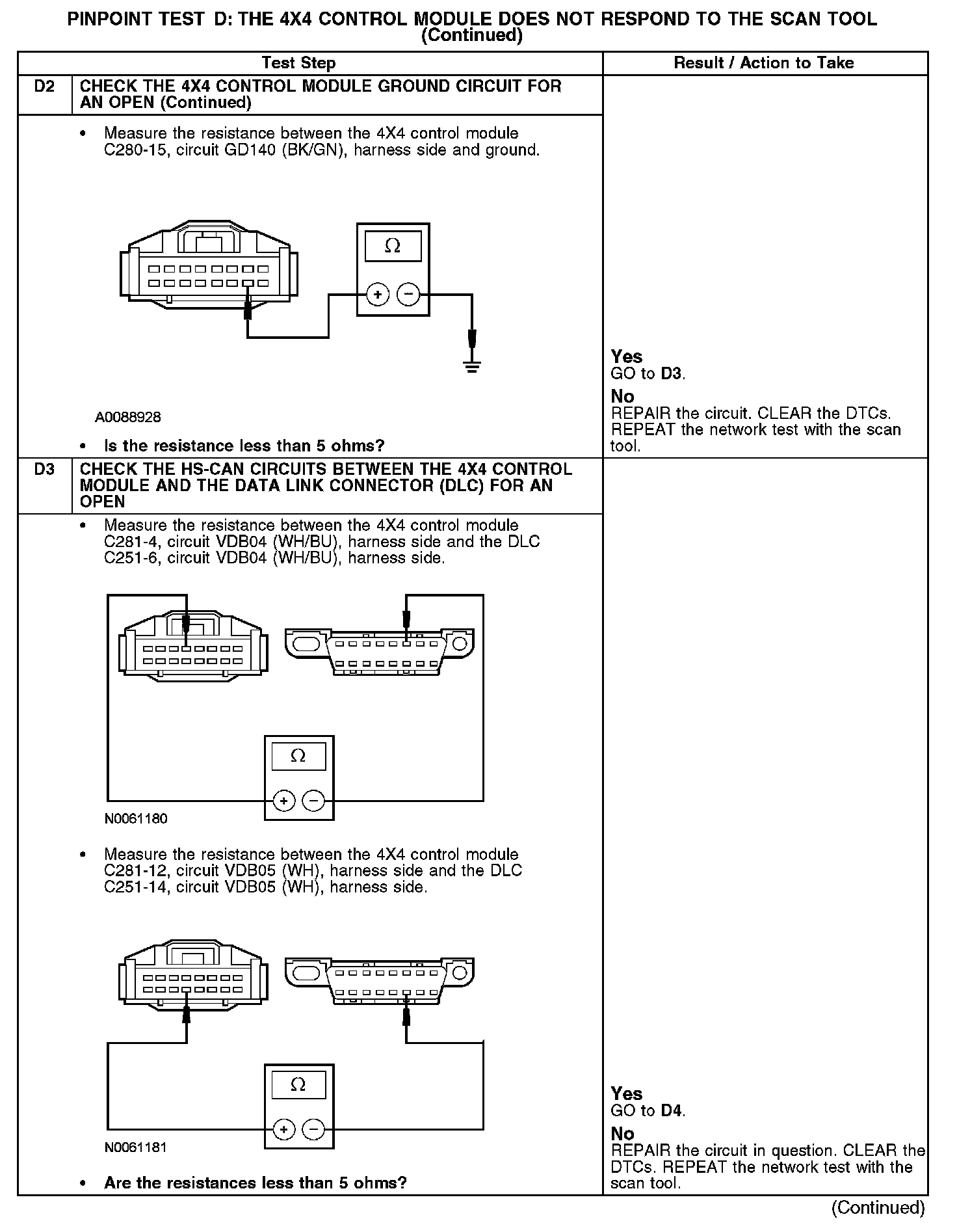 Home >> Ford >> 2008 >> Edge AWD V6-3.5L >> Repair and Diagnosis >> Powertrain Management >> Computers and Control Systems >> Information Bus >> Testing and Inspection >> Pinpoint Tests >> Test D: The 4X4 Control Module Does Not Respond To The Scan Tool