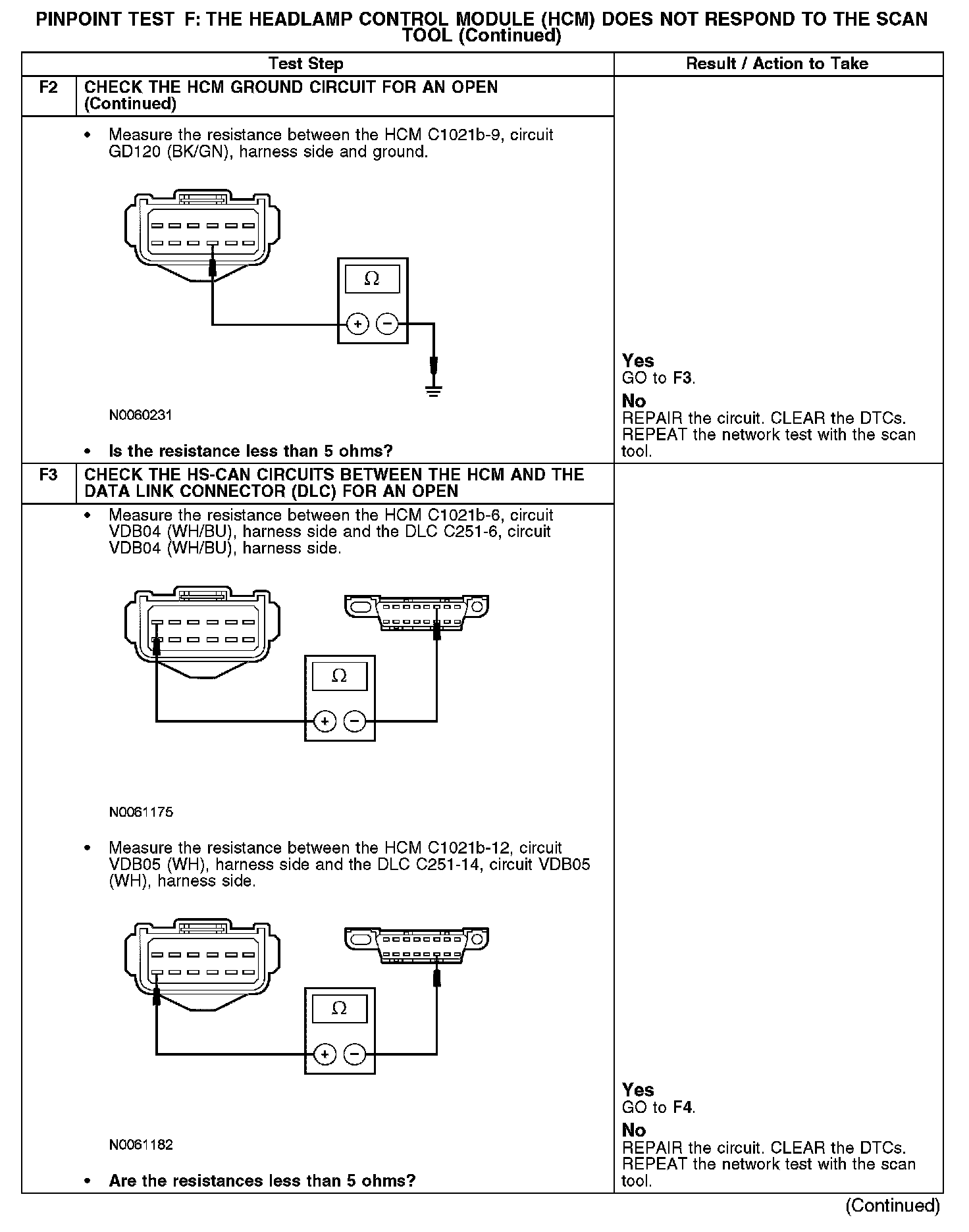 Test F: The Headlamp Control Module (HCM) Does Not Respond To The Scan Tool