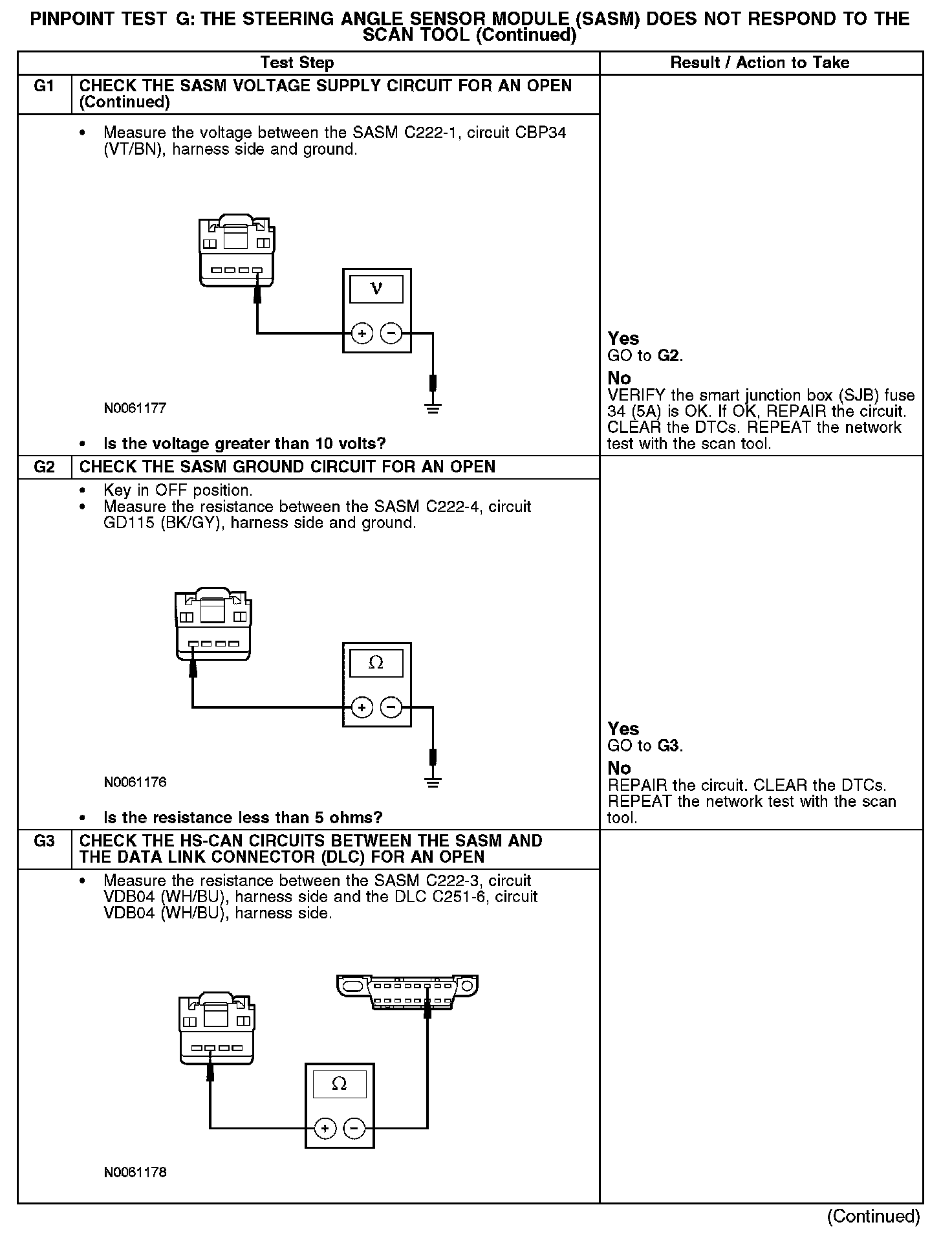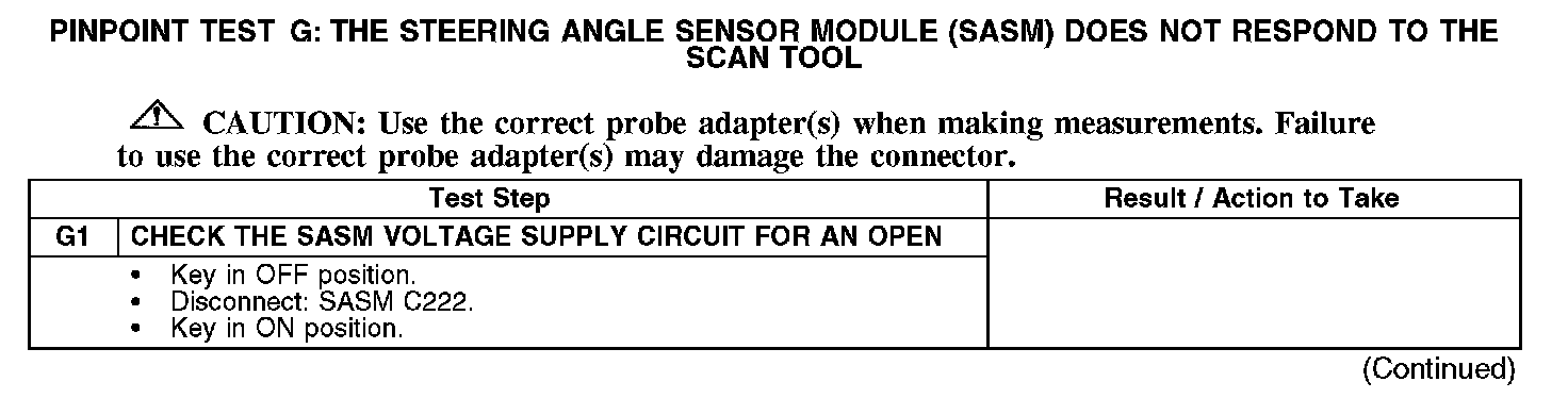 PINPOINT TEST G: THE STEERING ANGLE SENSOR MODULE (SASM) DOES NOT RESPOND TO THE SCAN TOOLNormal Operation