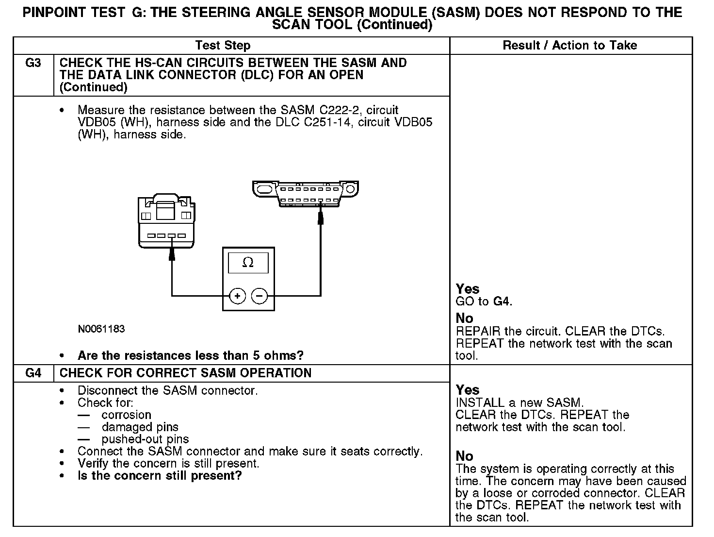 Test G: The Steering Angle Sensor Module (SASM) Does Not Respond To The Scan Tool