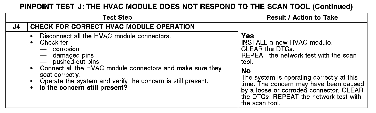 Test J: The HVAC Module Does Not Respond To The Scan Tool