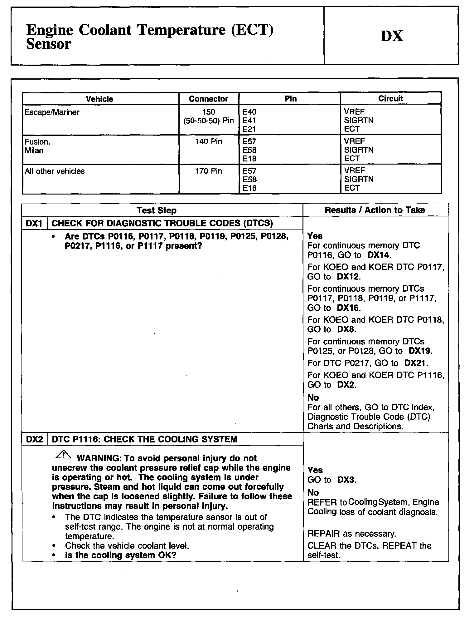 Tests DX: Engine Coolant Temperature (ECT) Sensor